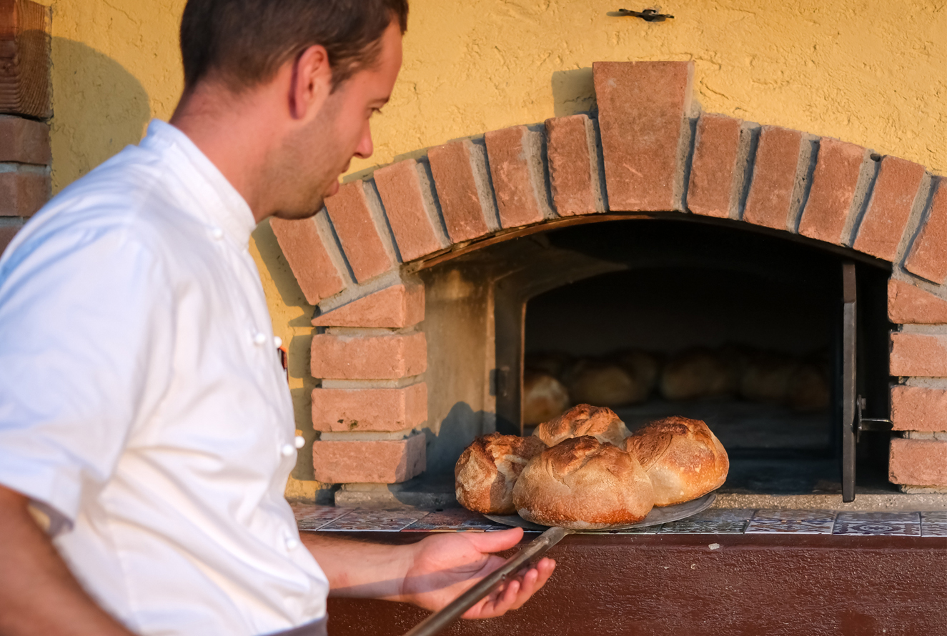 La legna di castagno proveniente dai nostri boschi alimenta il forno a legna, indispensabile per dare un carattere unico alle preparazioni, dai vegetali alle carni, e per il pane a pasta madre.